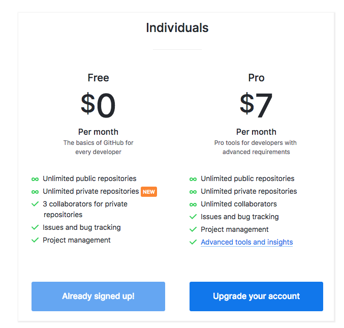 Why it worked: Developers often worked solo or in small teams. Metering access to private code, not people, aligned with real usage patterns of the time.