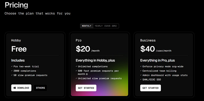 At $20/month for the Pro plan, users got up to 500 "requests" per month; a flat subscription fee with a usage ceiling. This wasn't true usage-based pricing; users didn't pay per token or per API call. Instead, they paid a predictable monthly fee but were capped at an abstract number of "requests."